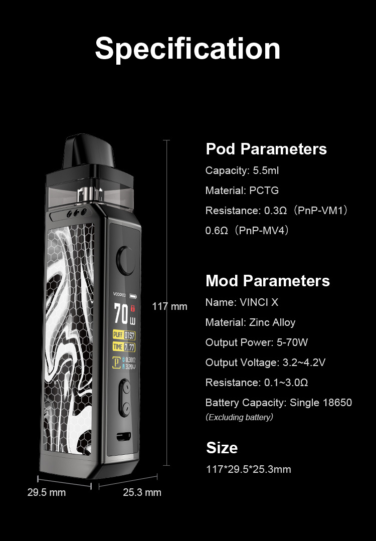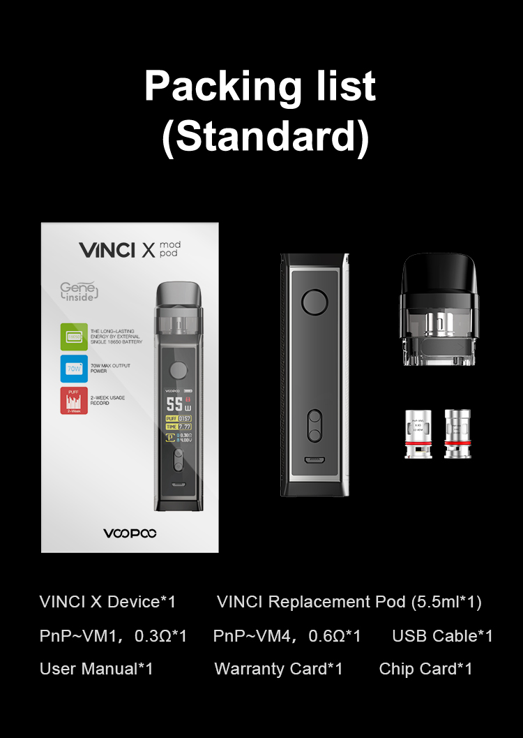 تحذير: يحتوي هذا المنتج على النيكوتين.النيكوتين مادة كيميائية تسبب الإدمان.المنتجات المعروضة على موقع VOOPOO مخصصة للسوق الدولية.بسبب اللوائح ، قد تختلف المنتجات المتاحة لمختلف المناطق.شكرا لتفهمك.