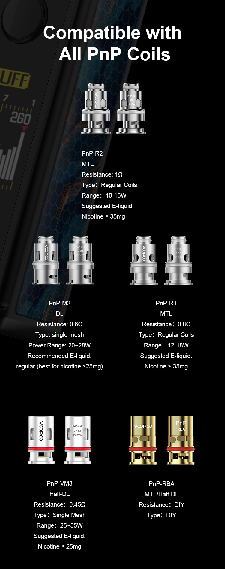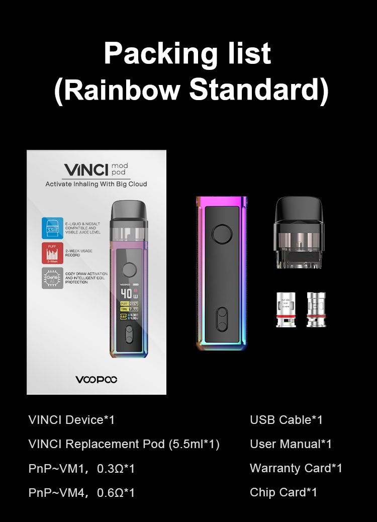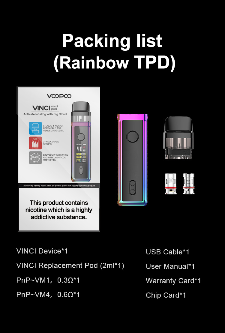 تحذير: يحتوي هذا المنتج على النيكوتين.النيكوتين مادة كيميائية تسبب الإدمان.المنتجات المعروضة على موقع VOOPOO مخصصة للسوق الدولية.بسبب اللوائح ، قد تختلف المنتجات المتاحة لمختلف المناطق.شكرا لتفهمك.