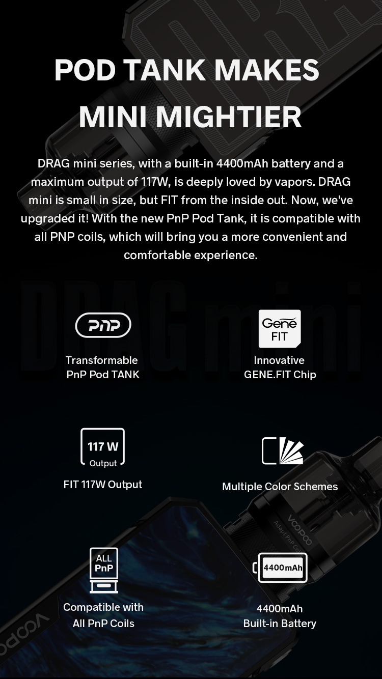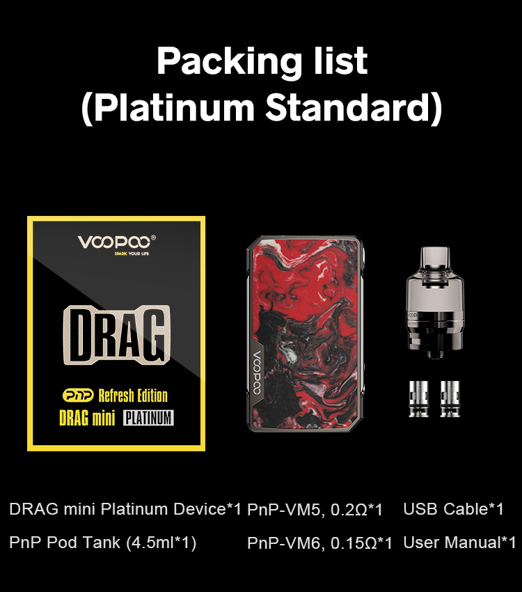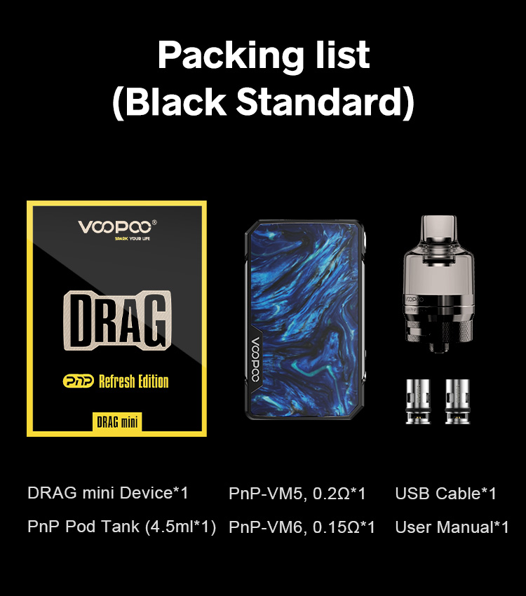 DRAG mini est compatible avec toutes les bobines PnP, il suffit de tirer et de pousser, vous pouvez profiter d'une expérience de vapotage différente, rapide et abordable.