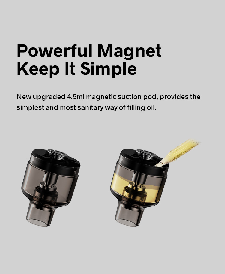 Le PnP Pod Tank sur DRAG 2 peut basculer de manière flexible entre POD et TANK ;Il correspond peut-être aux bobines PnP les plus abondantes et les plus excellentes;L'absorption magnétique rend le changement de bobine et le remplissage d'huile jamais aussi simples ;La base réglable air 510 s'adapte à presque tous vos appareils.Tout ce dont vous avez besoin, un seul suffit !