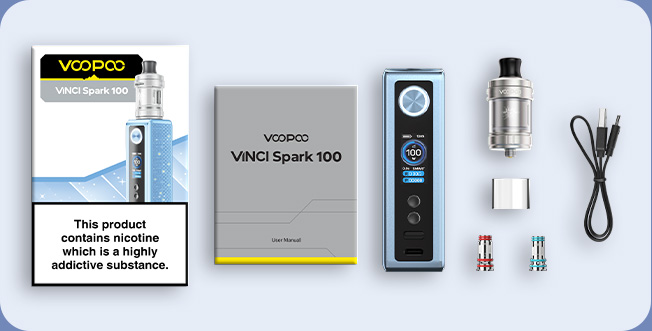 Doté d'une batterie 18650 amovible, le VINCI Spark100 prend en charge une puissance de sortie maximale de 100 W et offre plusieurs modes pour personnaliser votre expérience de vapotage.