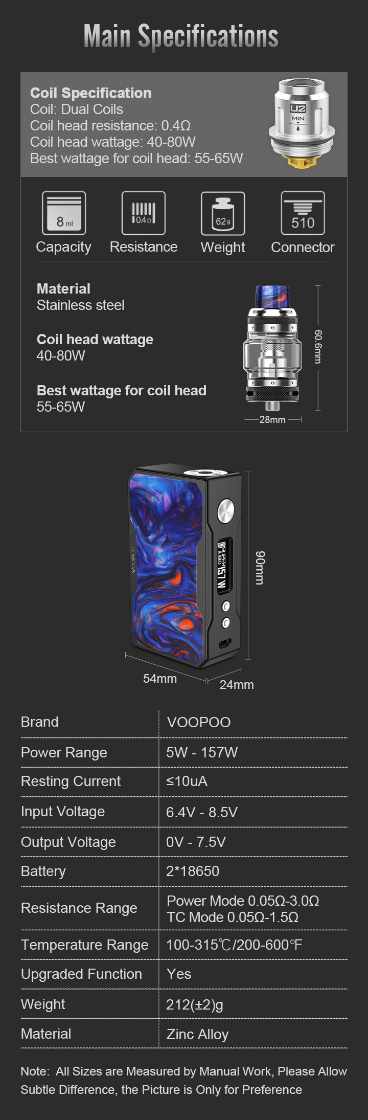 경고: 이 제품에는 니코틴이 포함되어 있습니다.니코틴은 중독성 화학 물질입니다.VOOPOO 웹사이트에 표시되는 제품은 국제 시장용입니다.규정으로 인해 지역에 따라 사용 가능한 제품이 다를 수 있습니다.이해 주셔서 감사합니다.