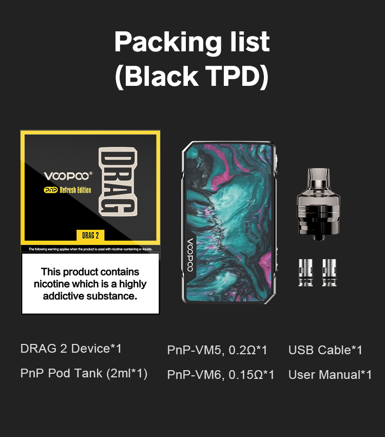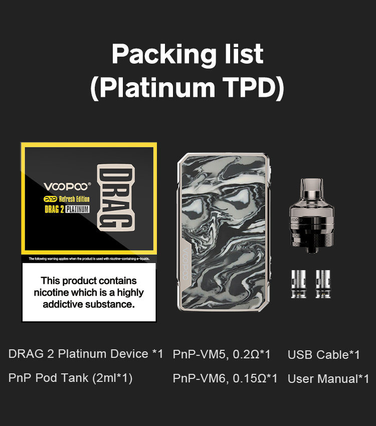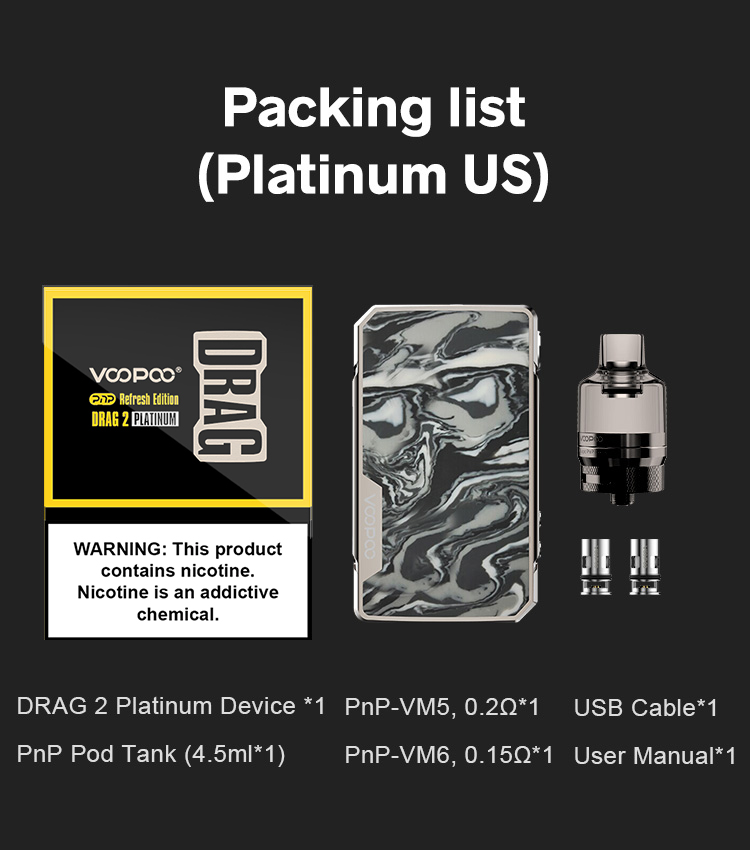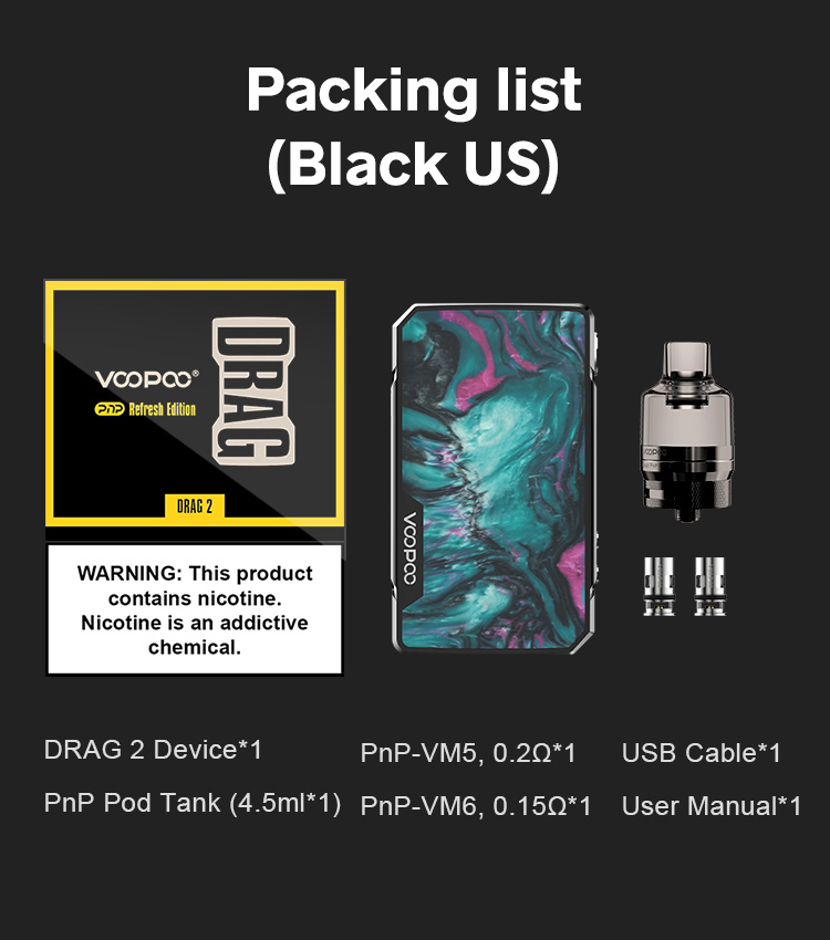 경고: 이 제품에는 니코틴이 포함되어 있습니다.니코틴은 중독성 화학 물질입니다.VOOPOO 웹사이트에 표시되는 제품은 국제 시장용입니다.규정으로 인해 지역에 따라 사용 가능한 제품이 다를 수 있습니다.이해 주셔서 감사합니다.