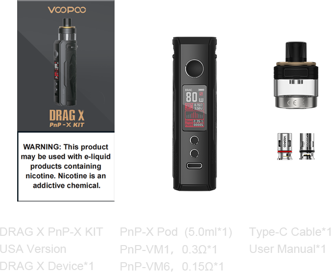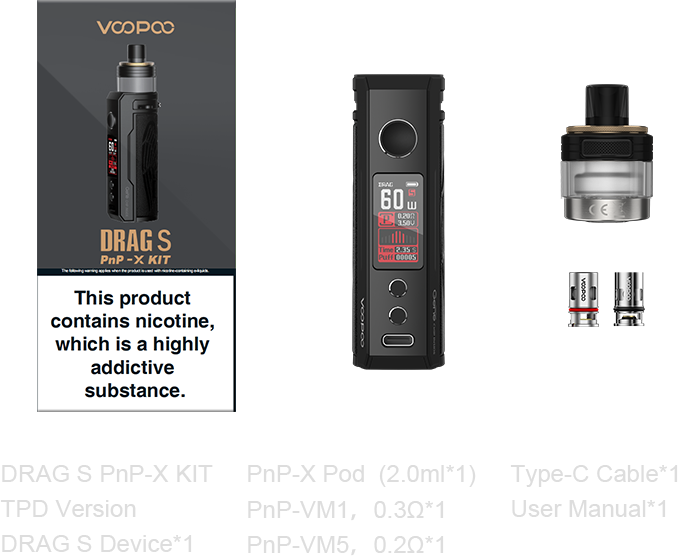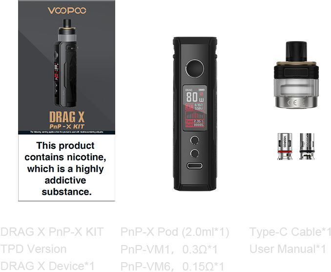 UWAGA: Ten produkt zawiera nikotynę.Nikotyna jest uzależniającą substancją chemiczną.Produkty prezentowane na stronie VOOPOO są przeznaczone na rynek międzynarodowy.Ze względu na przepisy dostępne produkty dla różnych regionów mogą się różnić.Dzięki za zrozumienie.