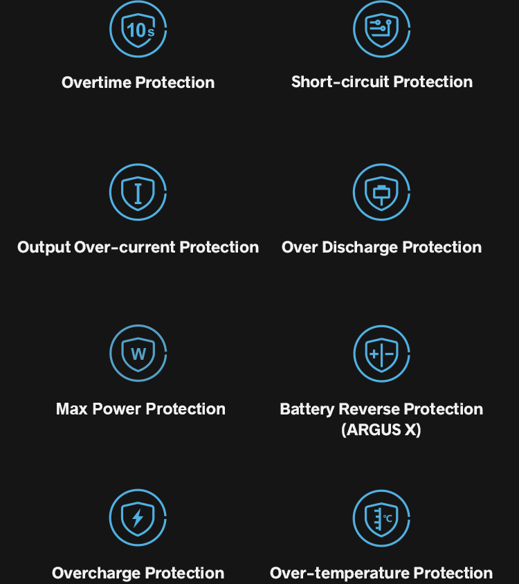 В ARGUS Pro и ARGUS X соответственно используется встроенный аккумулятор емкостью 3000 мАч и внешний аккумулятор емкостью 18650 мАч.В ARGUS PRO используется Type-C с быстрой зарядкой 5 В/2 А, а в ARGUS X используется порт для зарядки Micro USB.