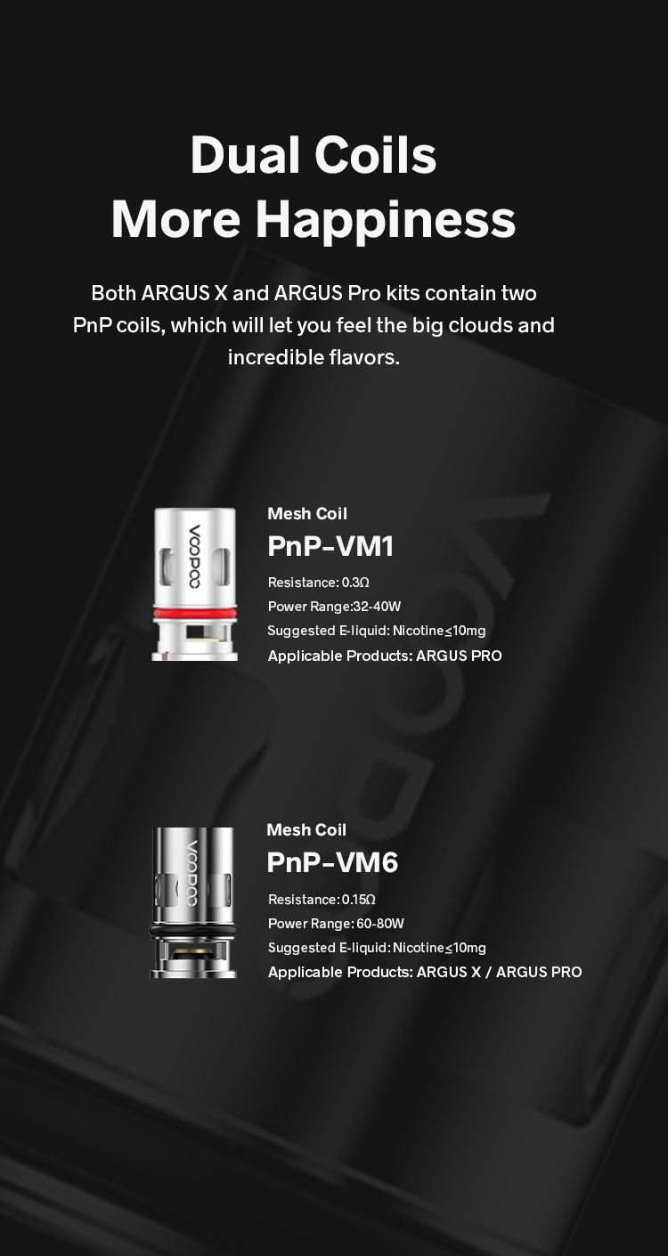ARGUS Pro совместим со всеми катушками PnP, включая RBA, просто потяните и нажмите, и вы сможете наслаждаться разнообразными впечатлениями от вейпинга, быстро и недорого.