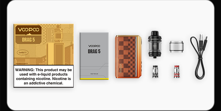 AVERTISSEMENT : Ce produit contient de la nicotine.La nicotine est un produit chimique addictif.Les produits affichés sur le site VOOPOO sont destinés au marché international.En raison des réglementations, les produits disponibles pour différentes régions peuvent varier.Merci de votre compréhension.