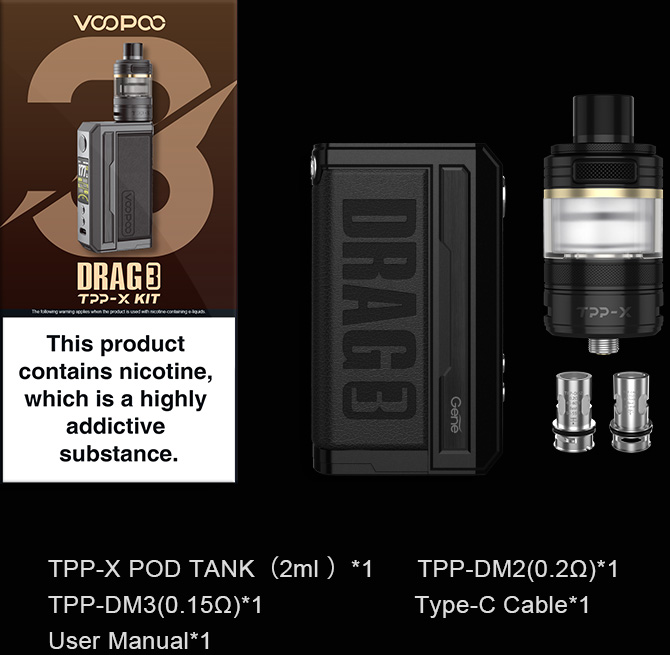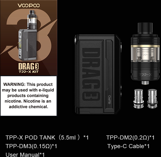 CẢNH BÁO: Sản phẩm này có chứa nicotine.Nicotine là một chất hóa học gây nghiện.Các sản phẩm hiển thị trên trang web VOOPOO dành cho thị trường quốc tế.Do các quy định, các sản phẩm có sẵn cho các khu vực khác nhau có thể khác nhau.Cảm ơn vì đã hiểu.