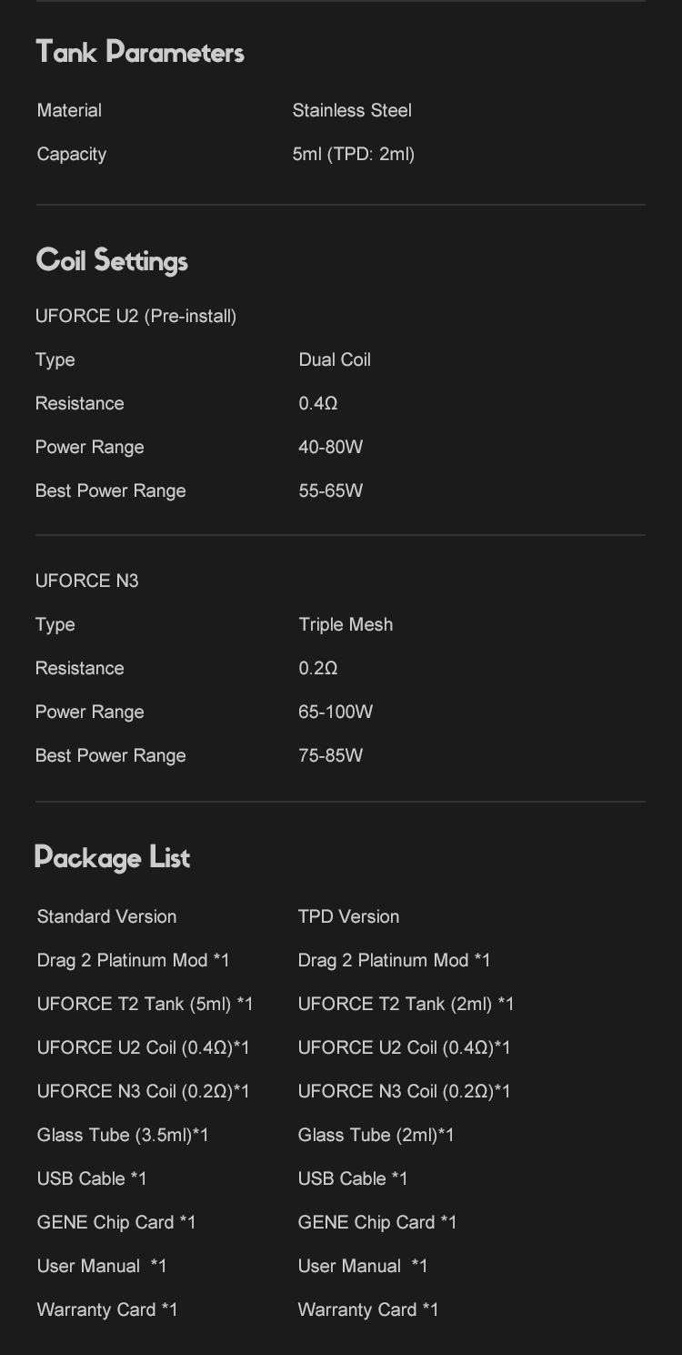 CẢNH BÁO: Sản phẩm này có chứa nicotine.Nicotine là một chất hóa học gây nghiện.Các sản phẩm hiển thị trên trang web VOOPOO dành cho thị trường quốc tế.Do các quy định, các sản phẩm có sẵn cho các khu vực khác nhau có thể khác nhau.Cảm ơn vì đã hiểu.